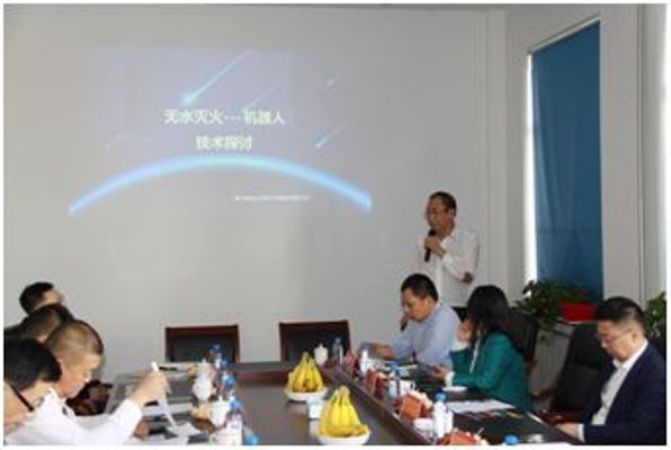 研討會上,遼寧衡業(yè)集團張鳳清董事長對市、區(qū)領導、高校教授及消防領域?qū)<业牡絹肀硎玖藷崃业臍g迎。鞍山衡業(yè)專用汽車制造有限公司謝奕波董事長對國內(nèi)外消防滅火機器人的現(xiàn)狀進行了匯報,并對未來機器人技術與現(xiàn)場專家進行了深入的探討,重點探討了無水滅火機器人技術的可行性以及鞍山衡業(yè)專用汽車制造有限公司面臨關鍵性技術難題,并希望與高校和相關企業(yè)實現(xiàn)合作,攻克難題。經(jīng)過探討,鞍山衡業(yè)專用汽車制造有限公司分別與西安交通大學、遼寧工業(yè)大學和蘇州新鼎應急裝備科技有限公司達成合作,并簽署了產(chǎn)學研合作協(xié)議。